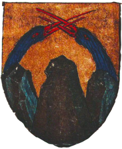 Das Wappen (hier gemäss INC 397) zeigt einen Felsen oder einen Stein (de lapide), und darüber die gekreuzten Schnäbel zweier Haselhühner. Mehr dazu...